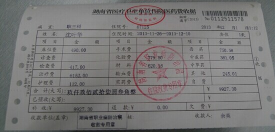 总计治疗花费人民币玖仟玖佰贰拾柒元叁角(9927.30元),全额由项目支付。