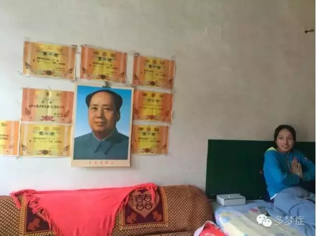 带着各种疑惑,颠簸了两个小时,我们终于到达了位于甘肃省庆阳市宁县盘克罗卜咀村的尘肺病人李小怀的家。一个看上去与正常人无异的中年男人站在门口迎接着我们,走进屋内,占据我们视线的是泛黄墙上的奖状以及奖状中间的毛主席画像。
