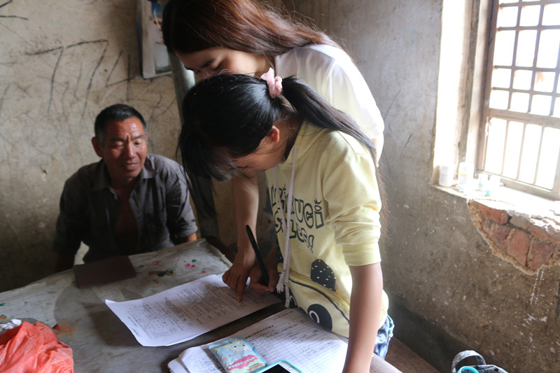 吴正员得知我们的来意,没说什么只是一个劲的点头,带我们走进房子。我走在他的身后,看着他衣服后面的两个破洞和三个划开的口子,想到他在我们填写调查问卷的时候,只说希望大爱清尘能帮帮自己的女儿,让她继续上学,对于自己需要的救助和生活的艰苦,绝口不提。