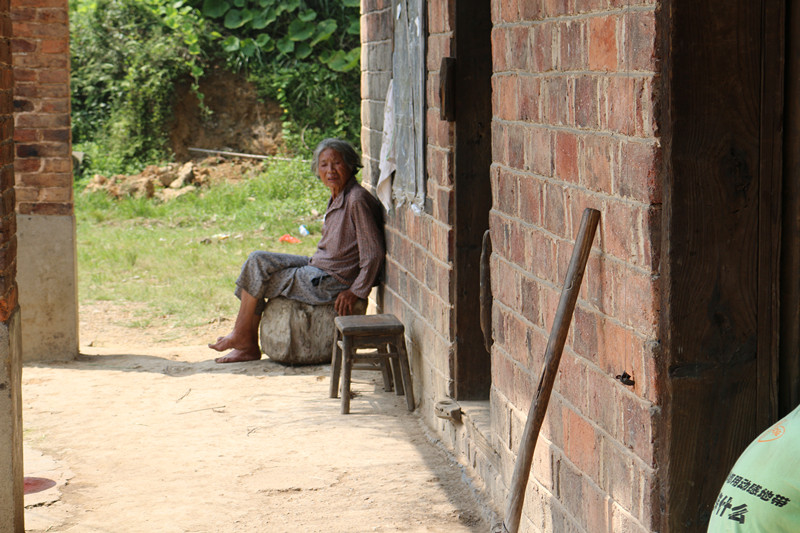 这个带我进家里的人叫吴正员,57岁,是湖南省益阳市安化县清塘铺镇栗山坳村的一个患有尘肺病的村民。我们到他家里探访,映入眼帘的第一幕,就是他的老母亲倚在几近破败的房子前面,赤着脚踩在土地上,目光呆滞的看着我们大爱清尘的志愿者们。赤着的脚,脚趾都移位到了脚背上,长成一团,狰狞可怕,我们都没有忍心去拍照记录。