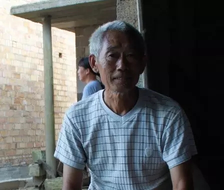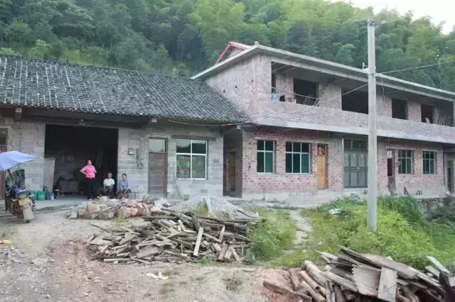 去他家的时候,他没在家,他老婆看到我们来,急忙拿了几个碗,给我们倒水。他家的房子和隔壁两个房子是一墙之隔,右边的房子是红砖的二层小楼墙,很大气,房顶上装有卫星接收器。门口一群鸡在散步,为首的大公鸡长着漂亮的毛,黑绿色的尾巴发亮,骄傲地一直在打鸣。左边正在建房,也是二层的房子,门口堆的沙石一直到吴应岳家。吴应岳家的单间平房夹在两个房子中间,显得有些另类。支书介绍说他家前年参与了政府的危房改造,重新帮他修葺了房屋。
