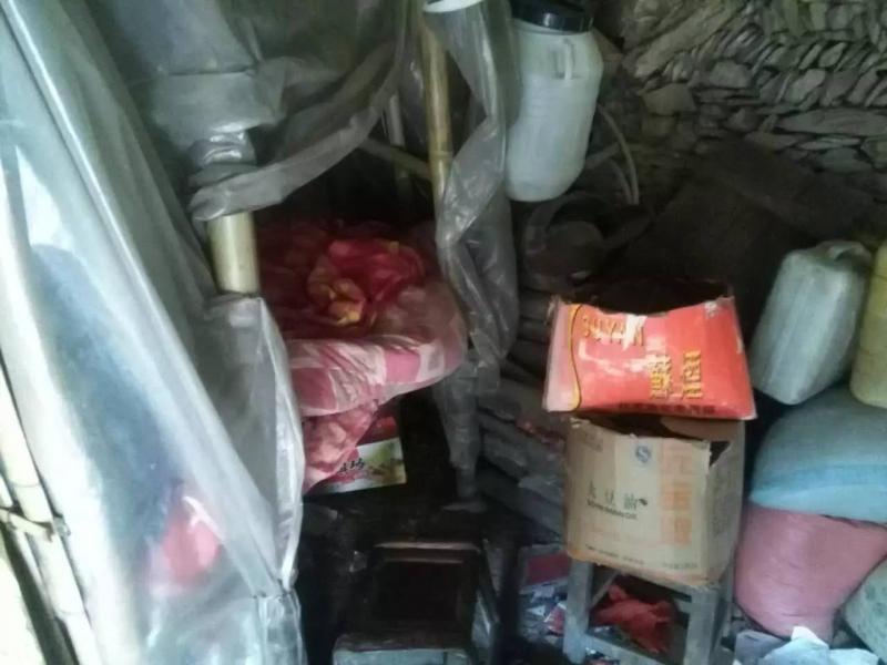 “房子也塌了,原来我们在山上。”候启云指着半山坡的房子说道。“后来实在没办法,就借了邻居的这两间茅草屋。”我顺着她的方向,不自觉地走进了旁边的茅草屋,和隔壁的猪舍一样,只是人工搭建的床铺上面多了一层塑料布而已。脑海闪现出一幅画面:“床头屋漏无干处,雨脚如麻未断绝。屋漏偏逢连夜雨,船迟又遇打头风。”