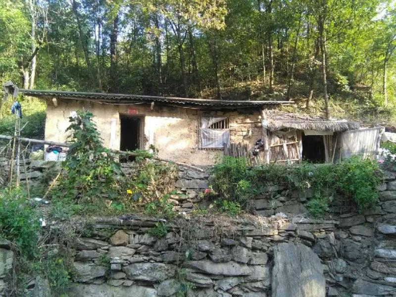 两间土坯房,一间茅草屋,一栏猪圈,一头猪呼呼酣睡。如果没有酣睡的猪,我以为走进了原始森林,抑或穿越到上古时代。