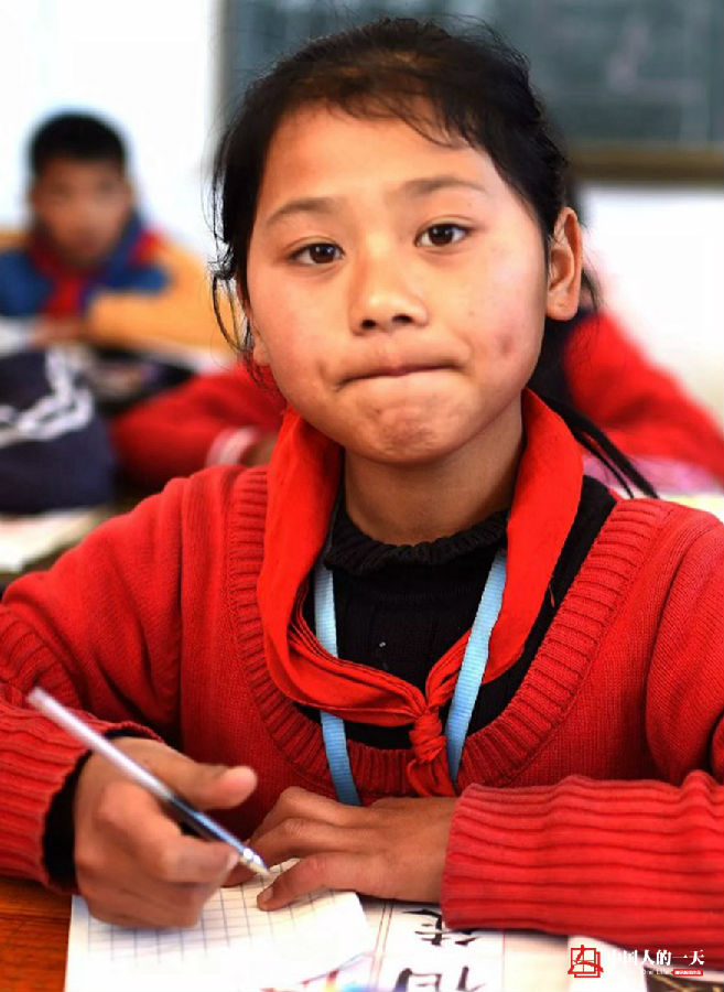 尚美琪,家住河南省镇平县石佛寺镇。当得知爸爸做了洗肺手术后,她一直难以在课堂上集中精神,总担心爸爸的身体会突然变坏。一想到家里患直肠癌的妈妈和上小学三年级的弟弟,她就有想辍学去打工的冲动,但最终被妈妈拦住了。她从小就热爱学习,成绩一直很好,但她表示,自己已经做好了随时辍学的准备。“一旦父母去世,我就要去外面打工,无论如何都要供弟弟念书。”图中尚美琪在课堂上。
