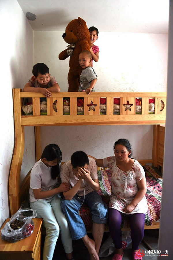 2010年,玲玲爸爸不慎又将左眼给炸瞎了。如今,41岁的他双目失明,还被查出尘肺病,三天两头躺在床上吃药打针。这个他一肩挑起的家就这样垮了。