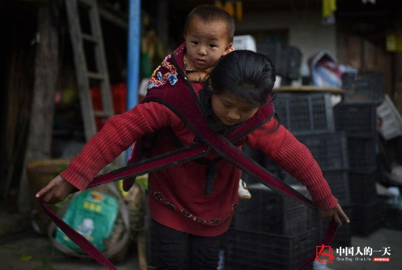 尹彩香,家住云南龙陵县龙新乡,她的爸爸也是一位尘肺病人。她的妈妈在爸爸患病后离家出走,留下父女俩相依为命。小彩香年纪虽小,却懂得爸爸所承受的痛苦。去年暑假,她帮邻居带小孩。年龄虽小,“可她带娃却有板有眼很老练,不需要任何人帮助,就能把小娃绑在背上,给娃喂饭、喝水、把尿……”事后,邻居给了她20元钱,让她买零食。小彩香拿了钱,转身跑到药店给爸爸买了三盒消炎药。她今年才10岁,就早已动了外出打工的念头。图为尹彩香帮邻居带孩子。