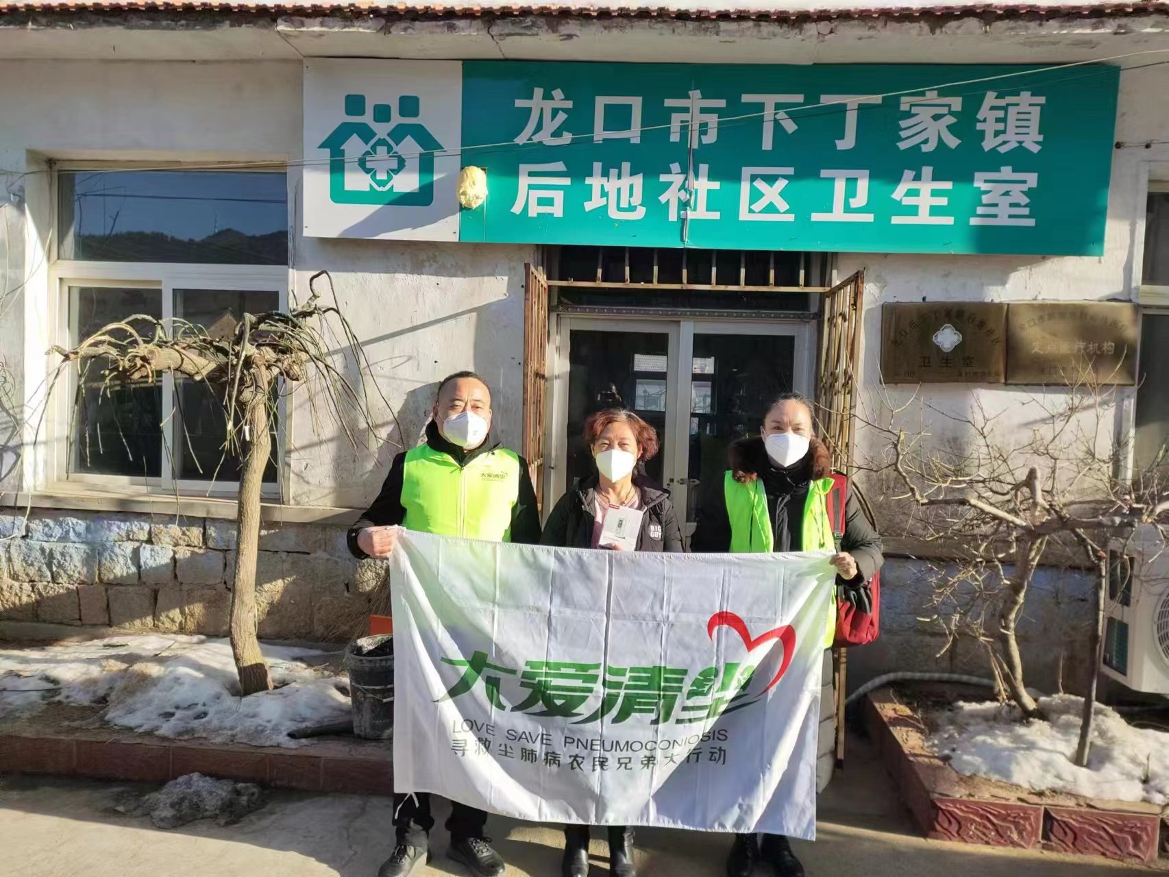 1月7号,山东省龙口市,下丁家康复中心专员与当地乡镇卫生院院长一起向村卫生室发放基金会捐赠的血氧仪。