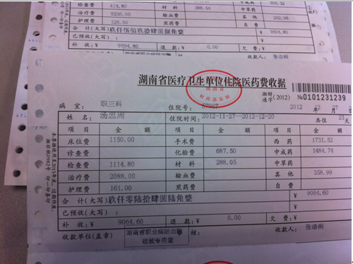 总计治疗花费玖仟零陆拾肆圆陆角(9064.60元),全额由项目支付。