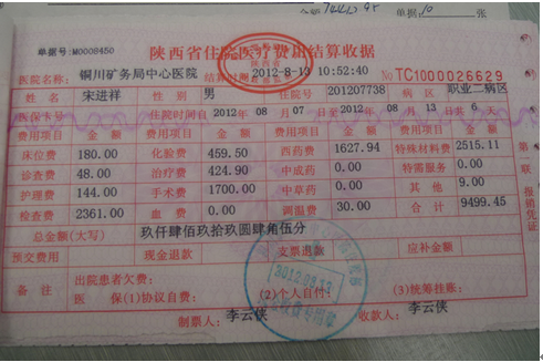 诊断——2012年4月在太和医院诊断为尘肺。2012年8月,在陕西铜川矿务局中心医院诊断为尘肺Ⅱ期。